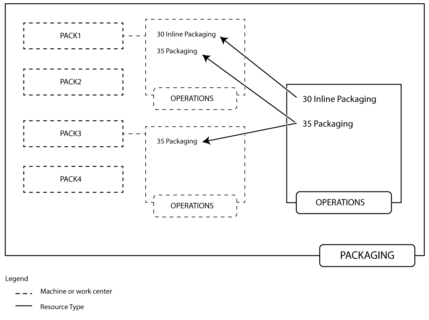First, the operations must be added to the parent resource type before you can add operations to the machine or work center.
