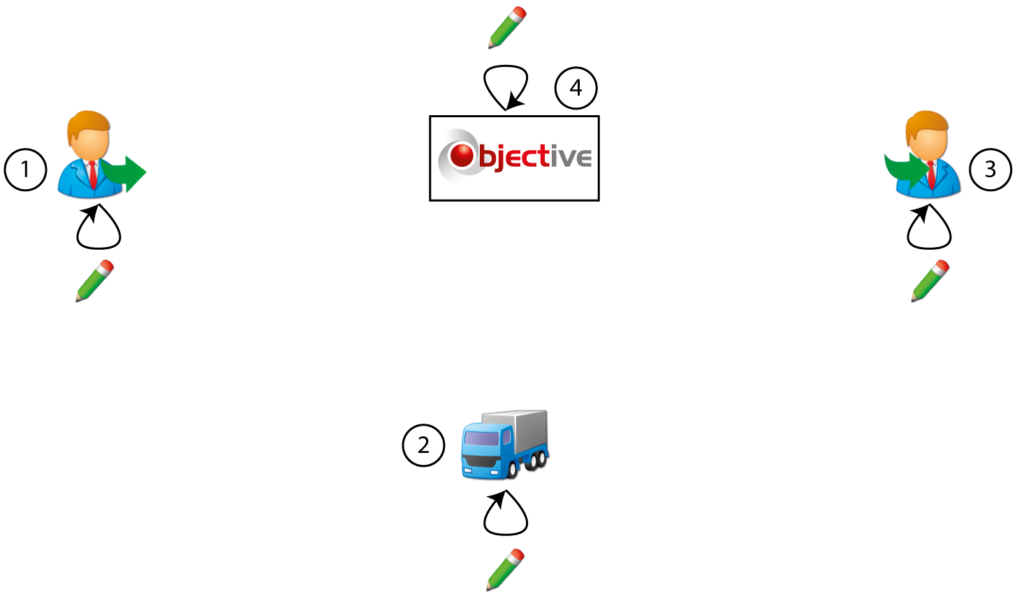 If the quantity of a certain asset at a supplier (1), carrier (transporter) (2), customer (3) or in the own inventory (4) is incorrect, then the supervisor can adjust the asset quantity.